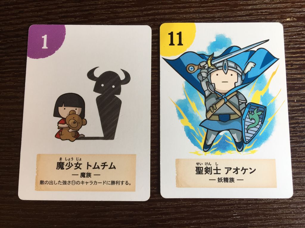 カードの数字がキャラの強さを表している。が、特殊スキルで逆転の要素もある。
