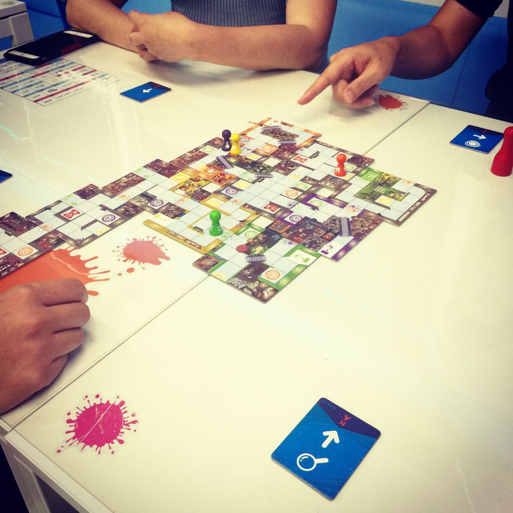 「右に動く」とか「上に動く」とか「マップを追加する」とか「ワープゾーンを使う」とかの動作を一人一人に割り当てられ、制限時間内に全てのコマを全員で協力しながら動かして、アイテムを集め、ゴールまでコマを進められたらプレイヤーの勝利!という協力ゲーム。協力ゲームなんだけど、これ喋っちゃいけないのね!奉行問題を「しゃべらない」という強引な手法で解決したのが面白い。しゃべれなきゃ仕切ることもできません。なるほど。