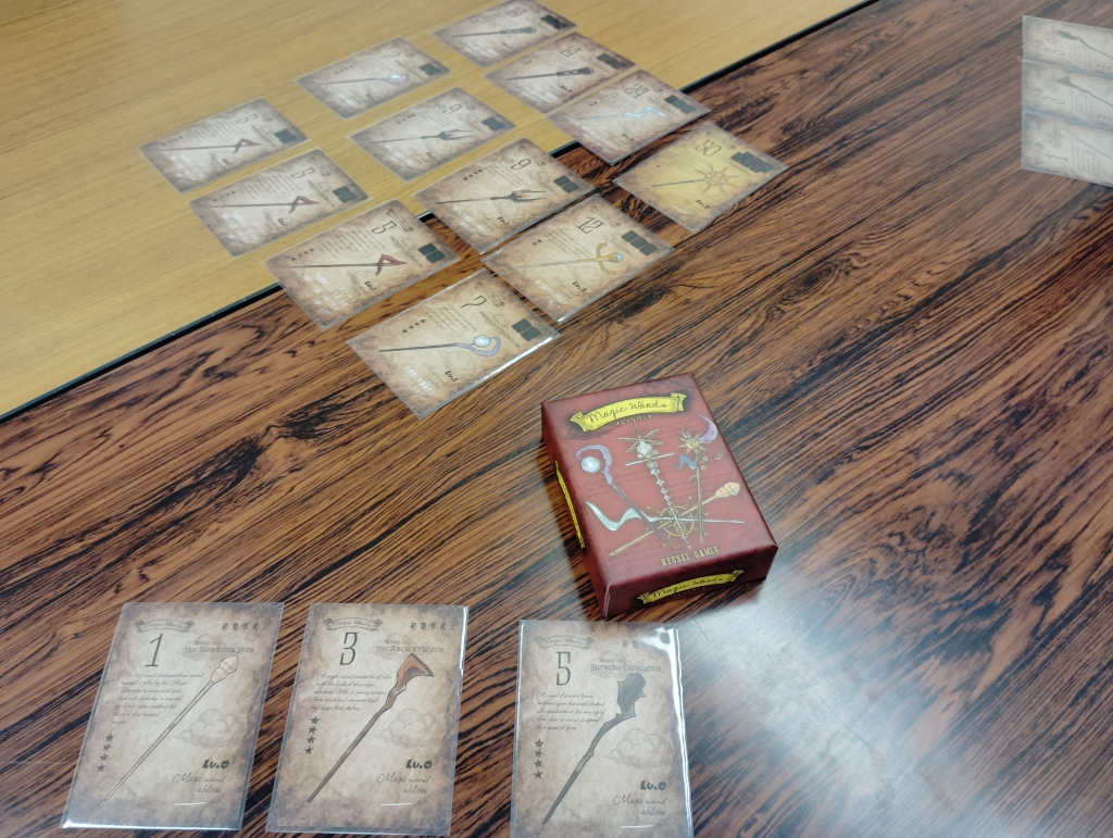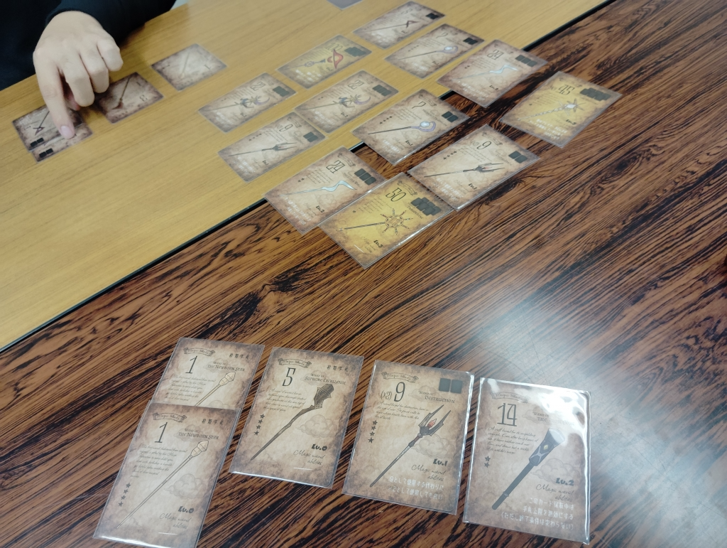 はじめは1、3、5の価値の杖を所持してスタートして、手番になれば手元にある杖を場にある杖と交換します。
