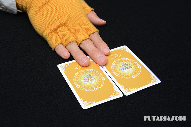 - バイトが全手札の中から2枚のカードを裏向きに場に出す。