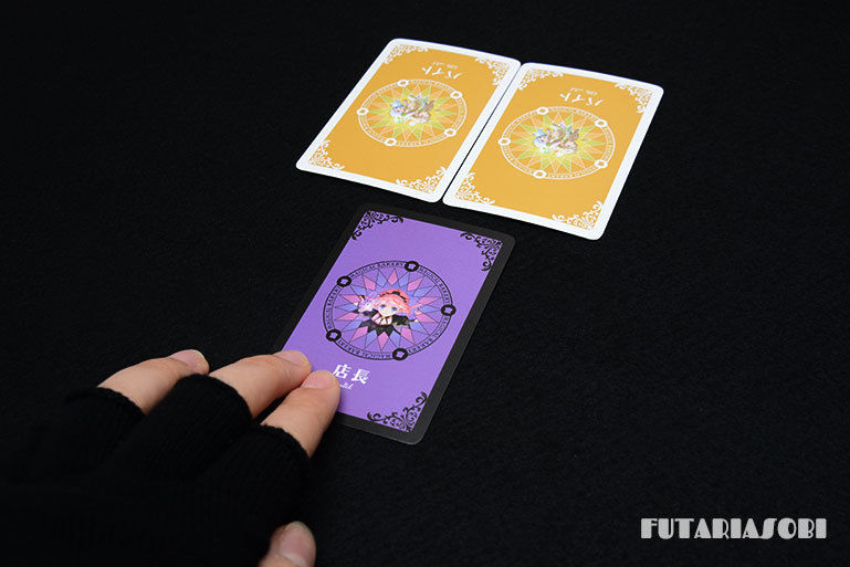 - 店長が手札の中から1枚のカードを裏向きに場に出す。