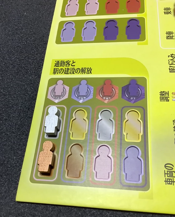 この二種のコマの色がちょっとわかりずらいです。何回か個人ボードにはめる位置を間違えました。