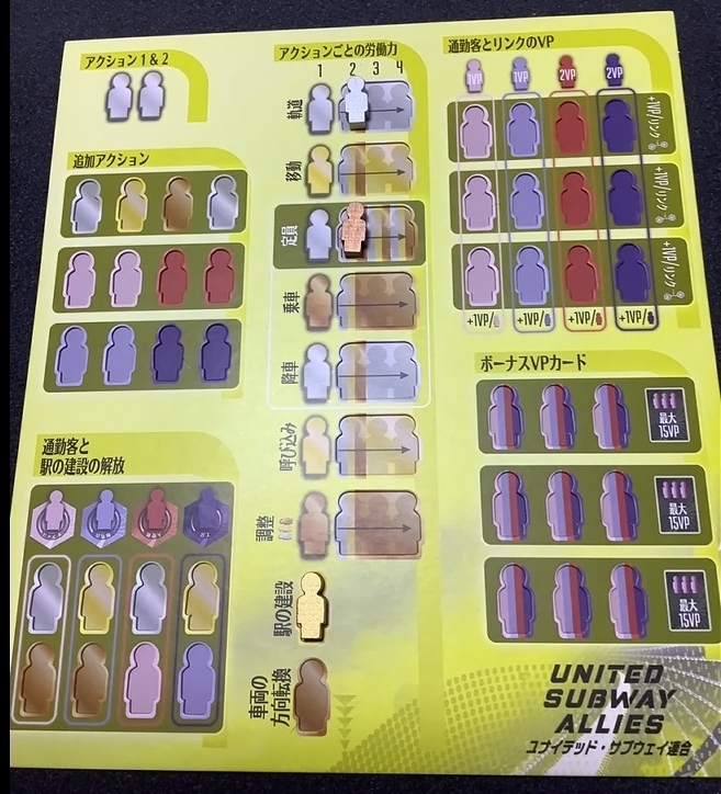 ソロモードもあるのですが、難易度が高いですねぇ。毎ターン袋からコマが減らされてその数がマイナス点になるので、手数は下げられるし新種の乗客を増やさないと即終了とかあります。