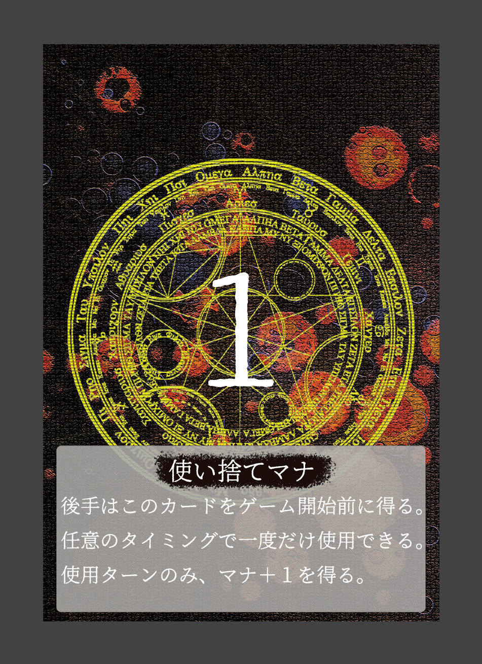 ④後手は「使い捨てマナ」1枚を得ます。その後、互いに「魂の燃焼カード」1枚を獲得します。