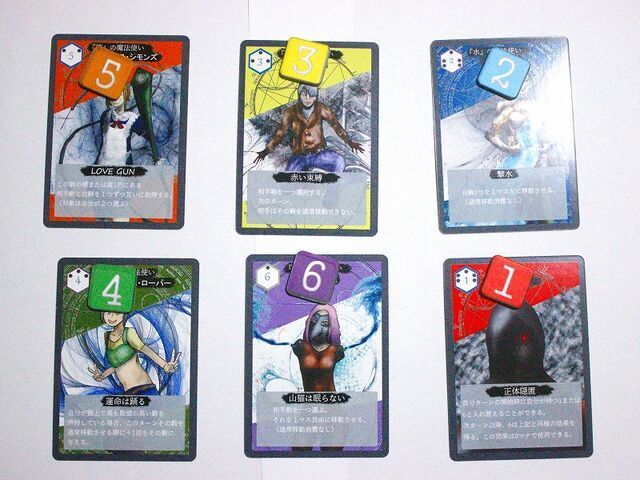 ①2,3,4,5,6の数値ごとに各3枚の魔法使いカードが存在します。