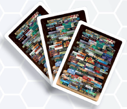 カード216枚 ゲームを製作するためのコンポーネントとして使用するか、契約として工場に表向きに配置します。ゲームはセットコレクション/カード、協力プレイ/チーム、戦争/戦闘、エンジンビルド/戦略の4種類で表現されています。 |