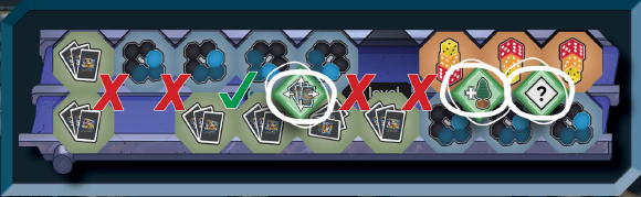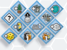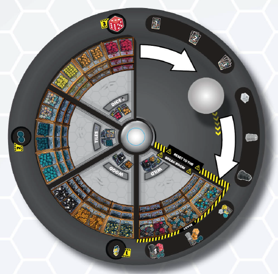 ステアリングホイール1つ 倉庫の上を覆い、6つのウェッジのうち4つだけを見えるようにします。各ターンの開始時にステアリングホイールが回転し、まったく新しいリソースセットを提供します。 |