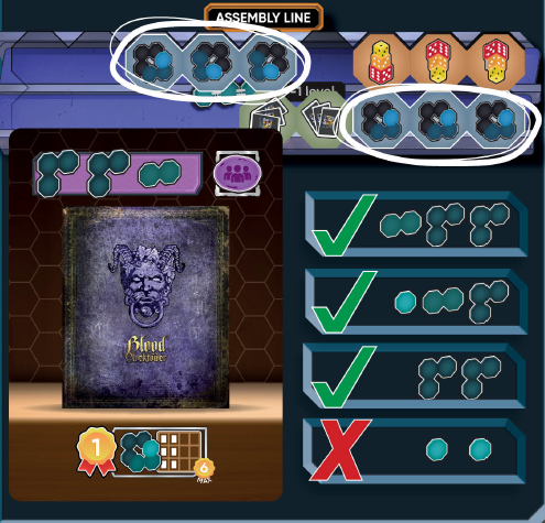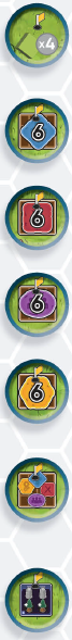 タイル140枚 60枚の小タイル、60枚の中タイル、および20枚の大タイル。ゲームコンポーネントとして使用するか、組立ラインエリアに、3つの一致する機械を横に連続して配置することで工場を強化します。 |