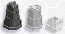 プラスチック50個 20の小サイズ、15の中サイズ、および15の大サイズのプラスチック製の建物をゲームコンポーネントとして使用したり、工場を強化するための構造物を建設したりします。 |