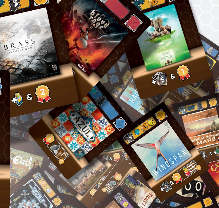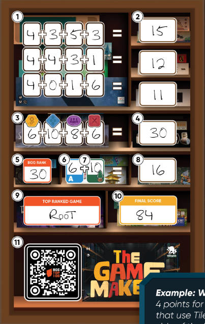 スコア: いずれかのプレイヤーのディスプレイケースが壮大なゲームボックスでいっぱいになると、ゲームの終了がトリガーされます。そして、集計する時が来ました–あなたのゲームはどの程度成功していますか?それらをどの程度うまくマーケティングしましたか?どちらもポイントが付与され、最も権威のあるメーカーだけが勝利を獲得します!
