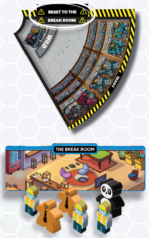 •「RESET TO THE」アイコンと「BREAKROOM」アイコンが揃うと、すべてのワーカーが休憩室に戻ります(18ページを参照)。 |
