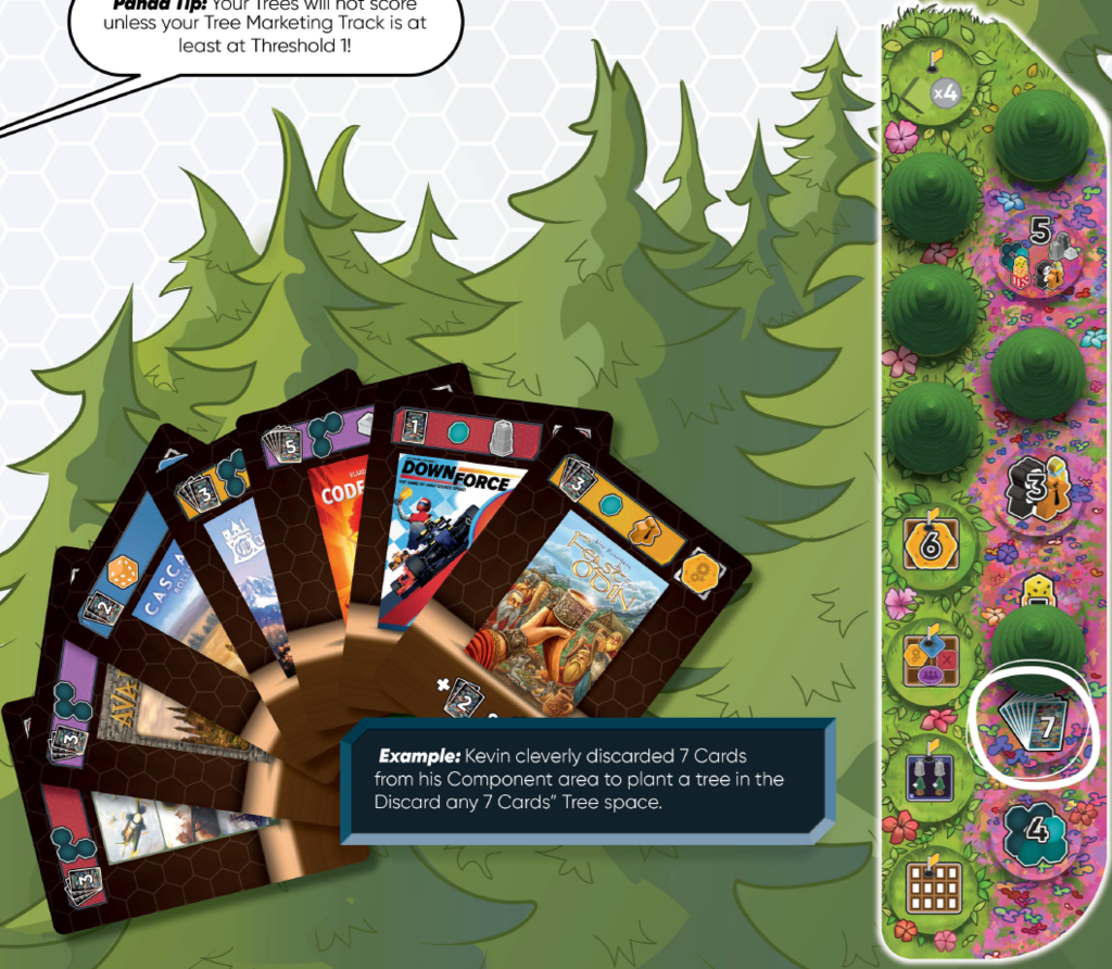 パンダのヒント: 経験豊富なプレイヤーは、必要に応じて、3枚のカードすべてをコンポーネントセクションに裏向きに配置することを選択できます。