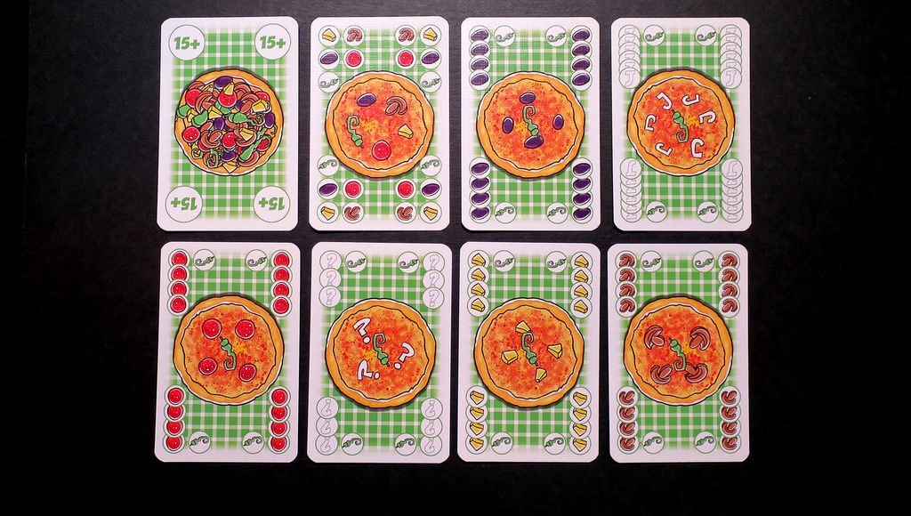 「ピザカード」マルゲリータや全部乗せ(15以上)などの完成目標となるカードが8種。