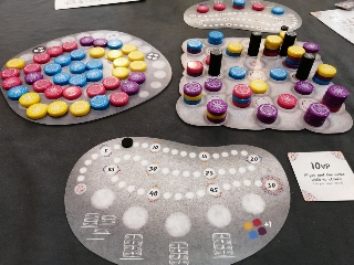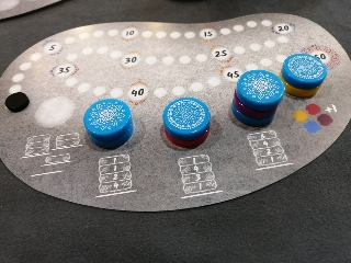 駒を動かす以外に個人ボードに配置したストーンを得点化することができます。得点化の方法は上にある色を1色選び得点にするか、色関係なく上にあるストーンを好きな数だけ得点にするかです。