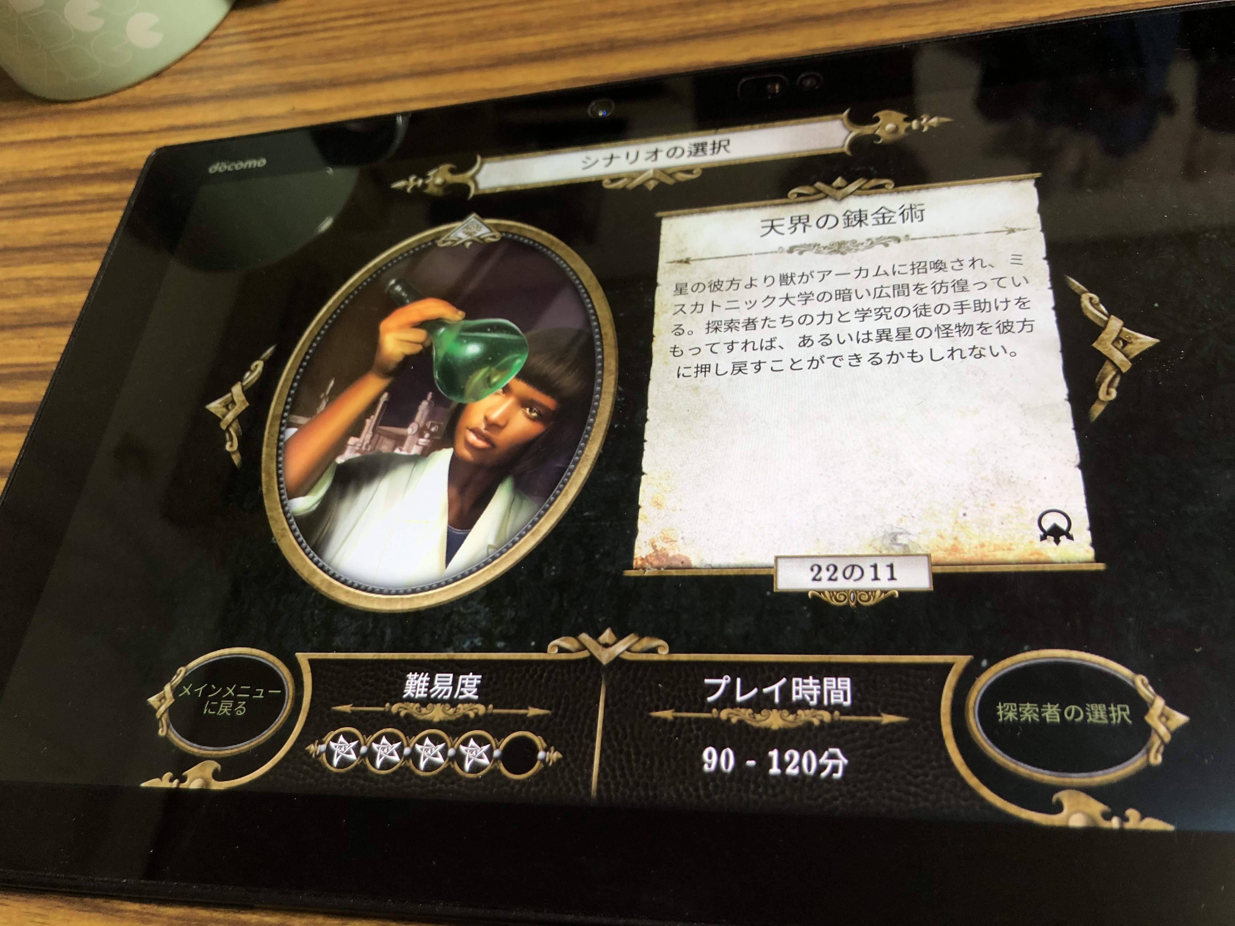 単独プレイヤーです。「MANSHIONS OF MADNESS 第2版 ストリート・オブ・アーカム」。マンションオブマッドネス追加拡張、日本語化されている拡張ということで購入しました。マンションオブマッドネス基本セットに組み込んで遊ぶ拡張セットなので、当然ですが基本セットとアプリを動かすタブレットなどが必要になります。基本的にはアプリの示す通りに進行していき、モンスターと戦ったりして謎?を解き明かしていくストーリーもの。