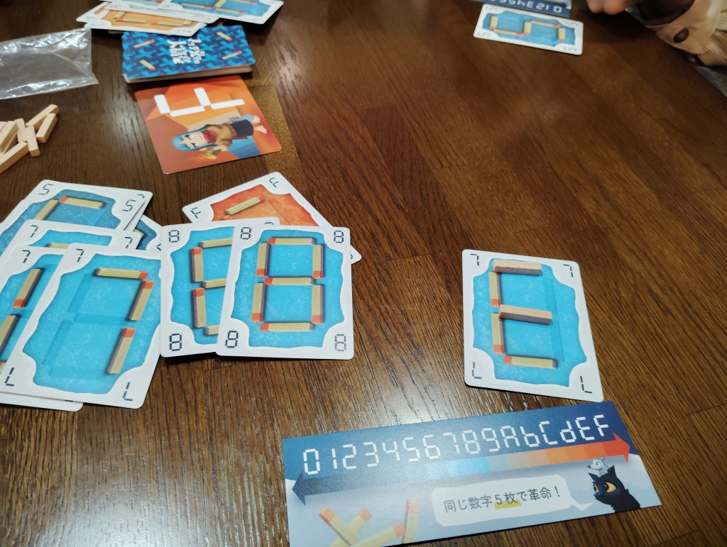 階段ルールは無しで、カードをプレイする際にマッチ棒を使い数字や英字を変化できるのがこのゲームの楽しいところ。