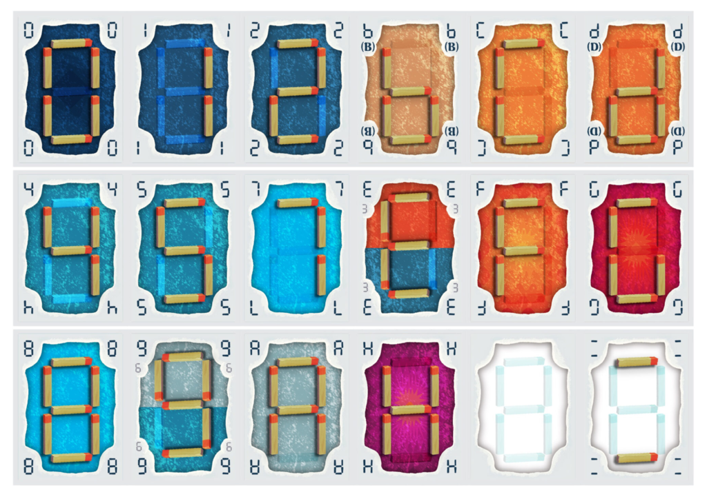 基本的なルールは大富豪と同じですが、カードは0~9の数字とA~Fのアルファベットで構成されていて、アルファベットが数字より強いです。Aは9に勝ち、Fが最強のカード。ジョーカーはありません。カードは全てマッチを使ったデジタル表記の数字で、手持ちのマッチ棒を使って変化させることが可能です。