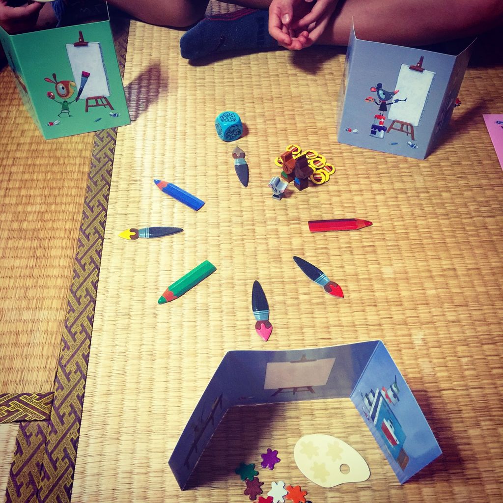 3人で遊びましたが、簡単そうにみえるテーマでも、3色に限定されると色の選択に個人の志向が垣間見えて面白い!