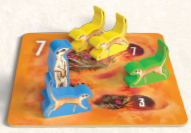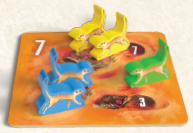 2番目に多く、場合によっては3番目に多いミーアキャットを持つプレイヤーは、それぞれ中間値と最低値のポイントを受け取ります。複数のプレイヤーが同数の場合、彼らはタイル上にまったくいないかのようにお互いを完全に打ち消します。その次に多くのミーアキャットを配置したプレイヤーが、タイルに記載されているポイントを獲得します。