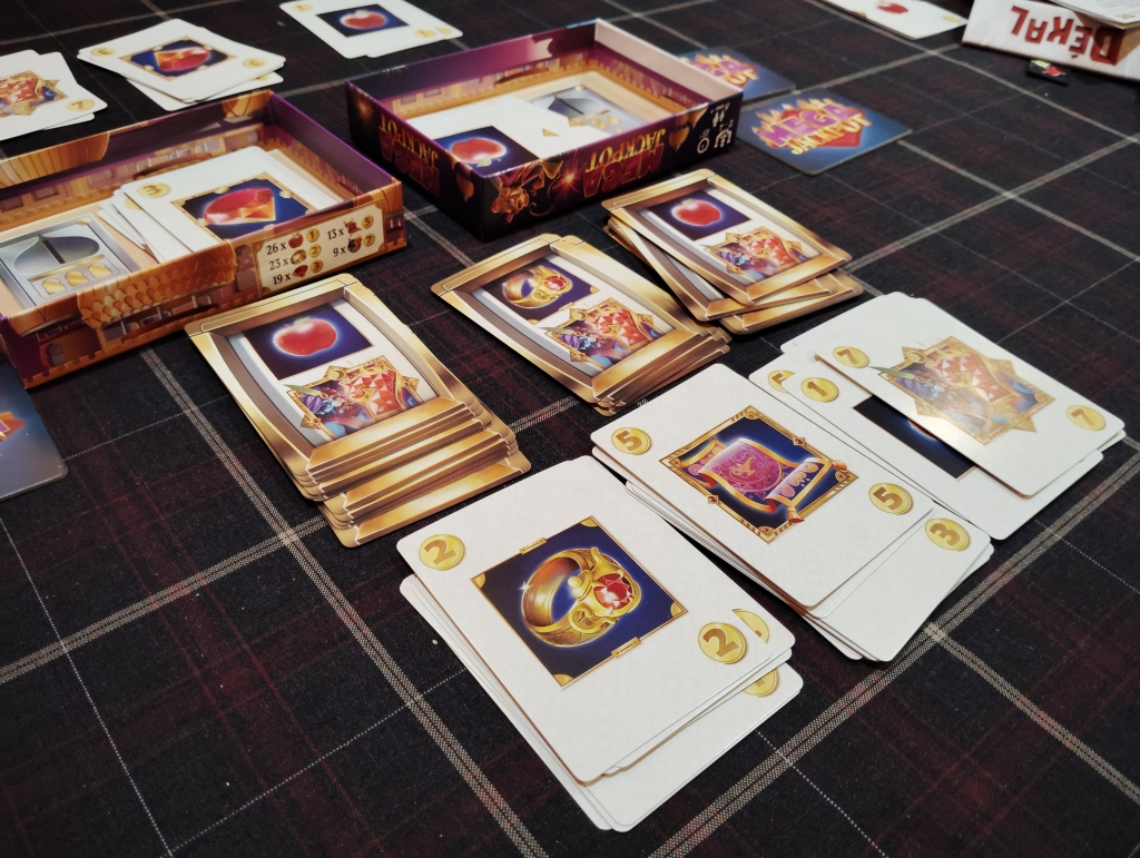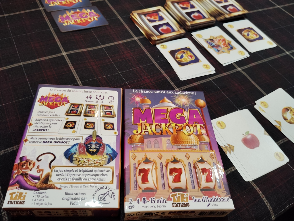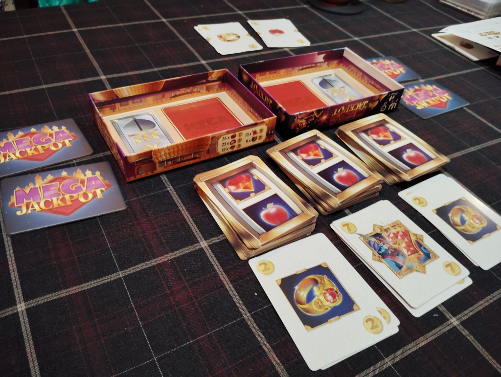 スロットがテーマのボードゲームで、1番お金を稼いだ人が勝ちになるが、スーパージャックポットを決めたら特殊勝利となるので、よいギャンブル感があります。
