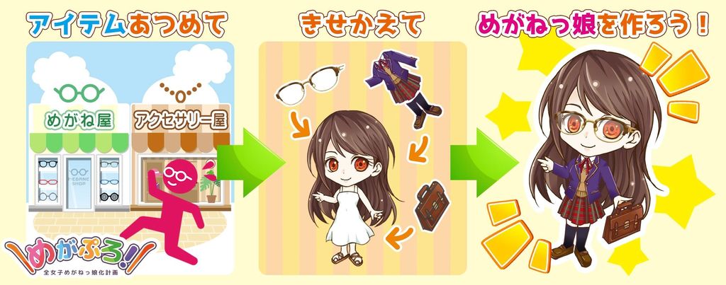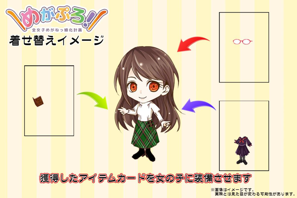 このゲームは自分が担当する女の子に、眼鏡・衣装・アクセサリーを装備させて、理想のめがねっ娘にするゲームです。