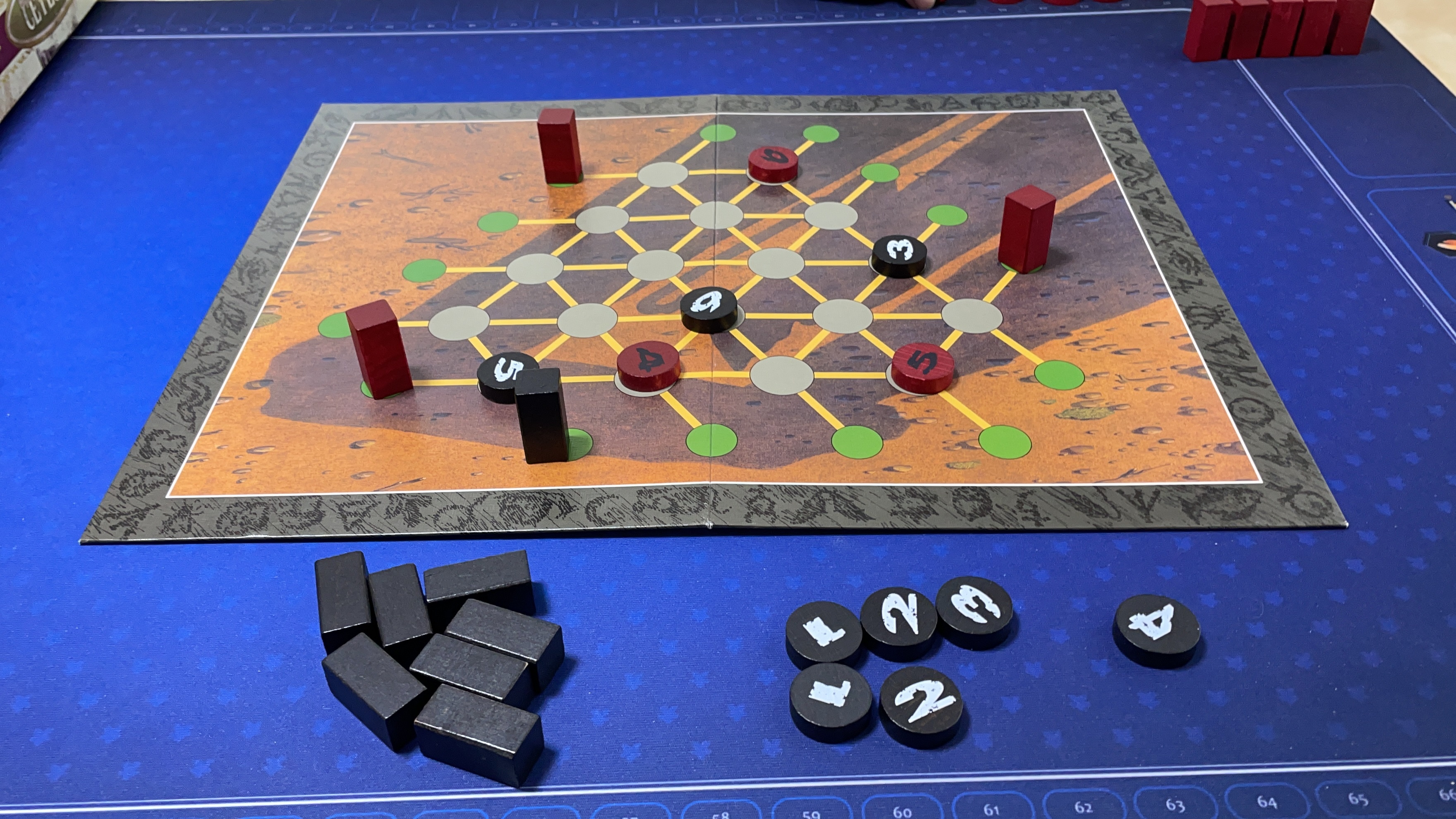 先に8本の石を建てたら勝つアブストラクトゲームです。数字を交互に置くだけですが、数手先が目の前に浮かんで絶望できます。