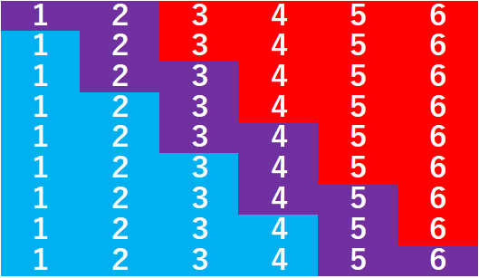 紫:1×1、2×3、3×3、4×3、5×3、6×1 の計14枚