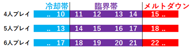 炉出力の合計値が16なので4人プレイではゾーン判定がメルトダウンになってしまった