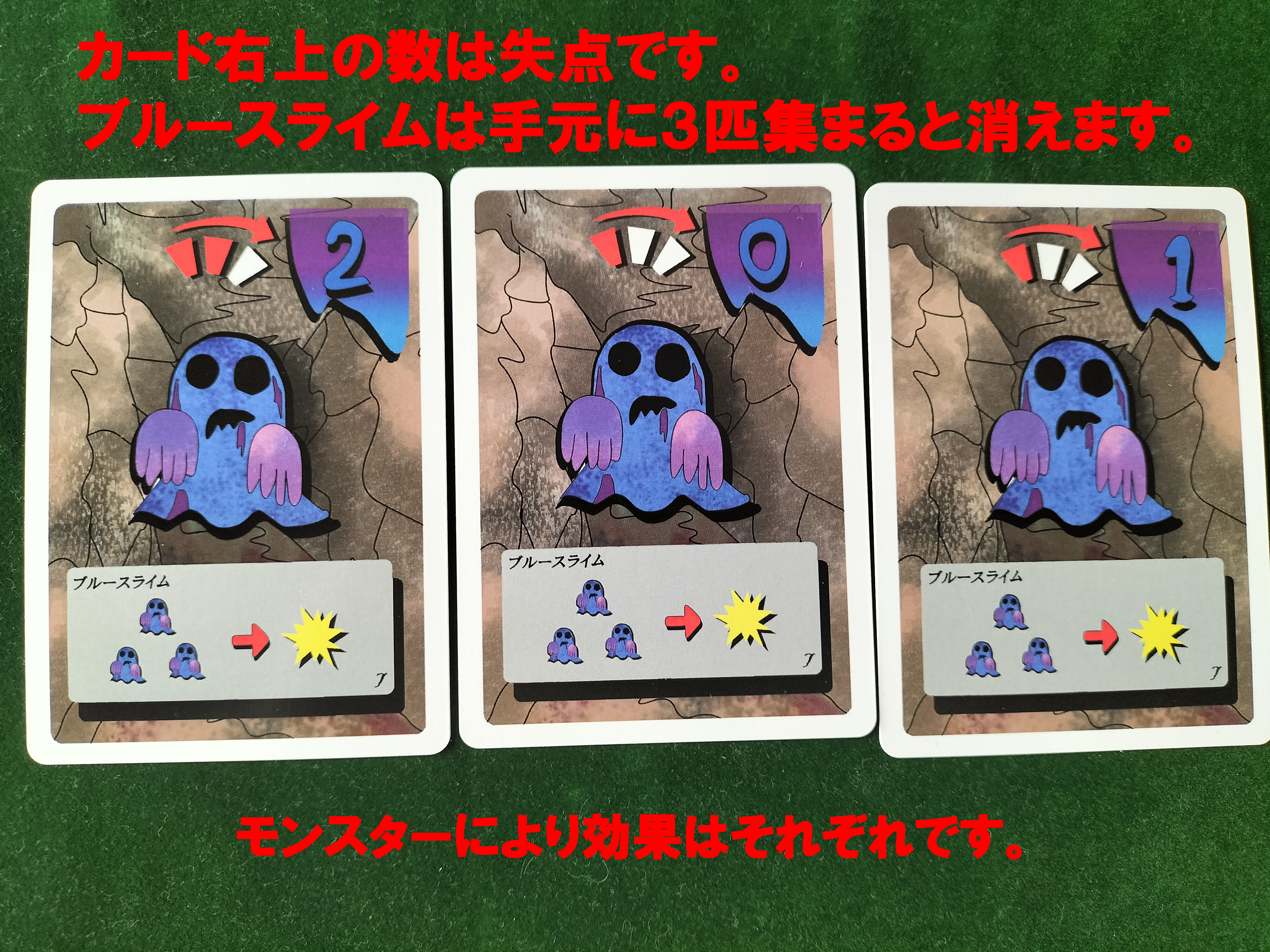 ゲームは山札が無くなったら終了。手元の失点が一番少なかった人が勝者です!