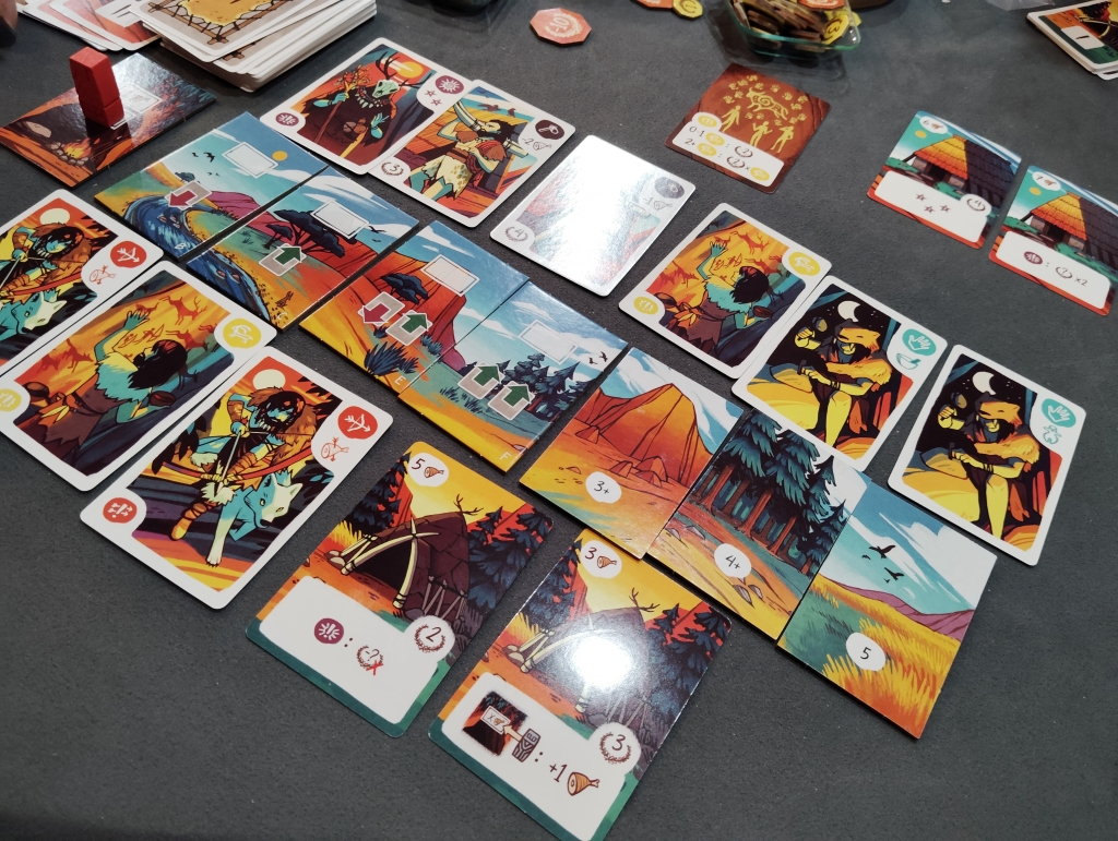 10ラウンドのオープンドラフトゲームで、上下にあるカードを1〜2枚獲得することになるが、次ラウンドに早く手番を行いたいなら獲得できる枚数が少なくなります。