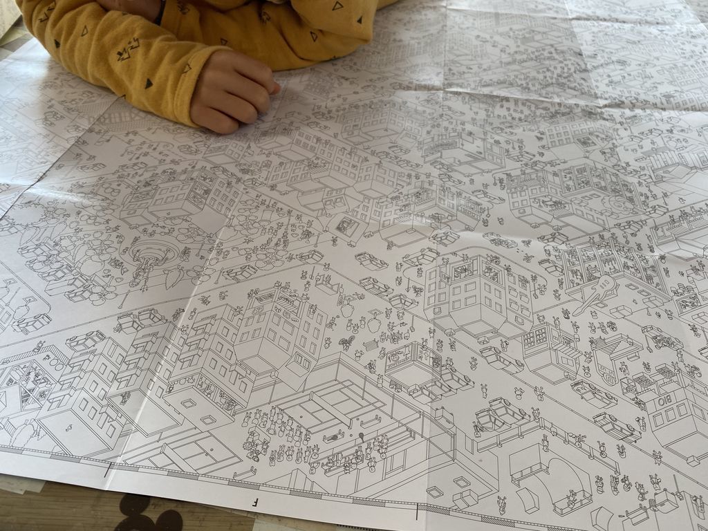 「細かい絵で目が疲れてきちゃった。色塗りたい(笑)」と言って、妻が離脱しました。