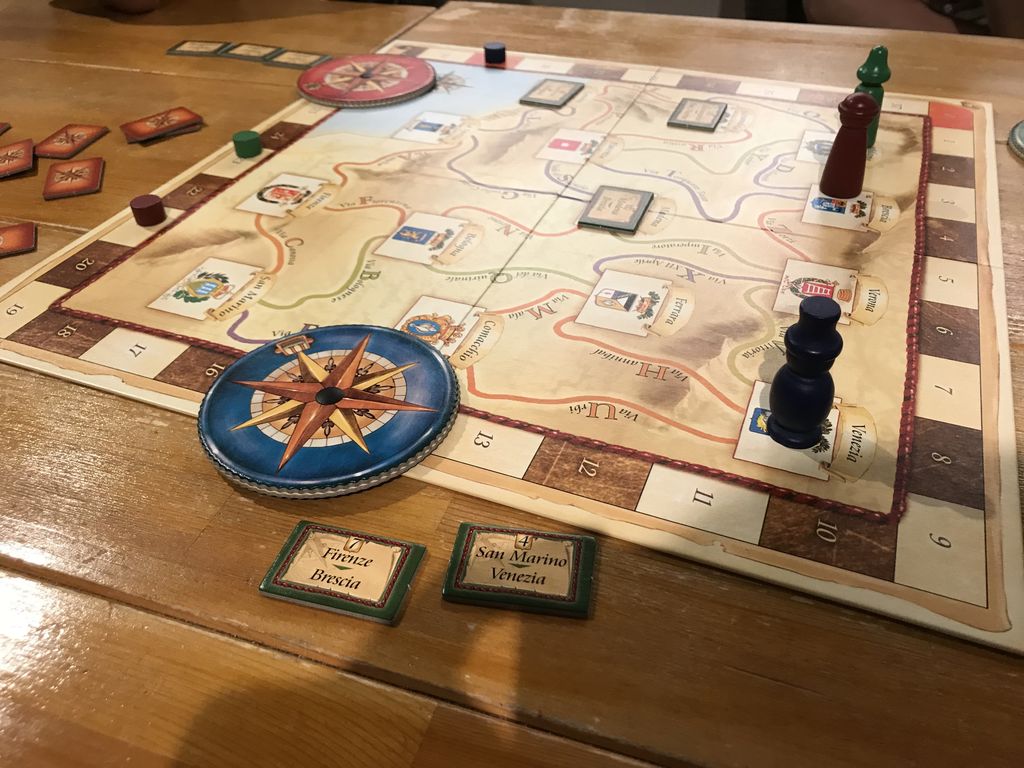 ボードはイタリアを舞台に色々な町とそれを繋げる道が沢山描かれています。