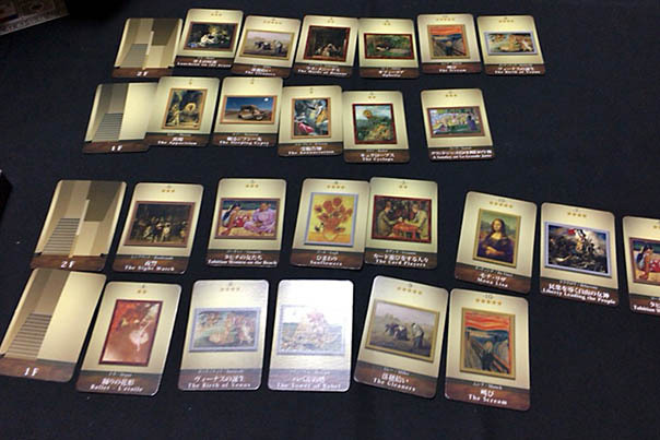 最終的にはすべての絵画が1枚ずつ残り、2階のカードは★×2、1階のカードは★×1の点数を得る。