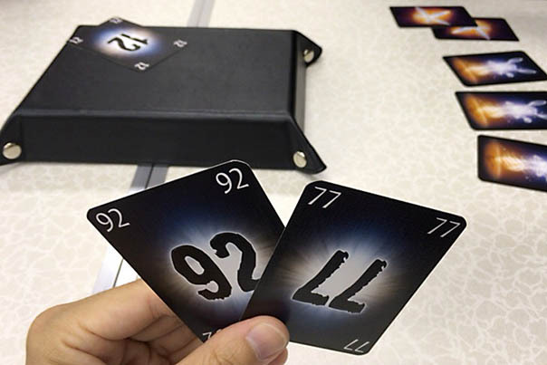 1ゲーム目は一人1枚カードが配られる。これを、自分のカードが一番小さいと思った順にプレイして行く。