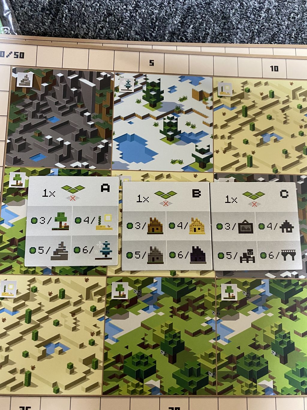 Aの得点計算は個人ボードに配置されているタイルのバイオームを参照します。これ以降の得点計算も同じやり方です。4つのバイオームのうち自分の得意なバイオームを選択します。3つ以上そのバイオームが連なっている場所があれば1つにつき規定のポイントが入ります。2つ以下や斜めは連なっているうちに入りません。
