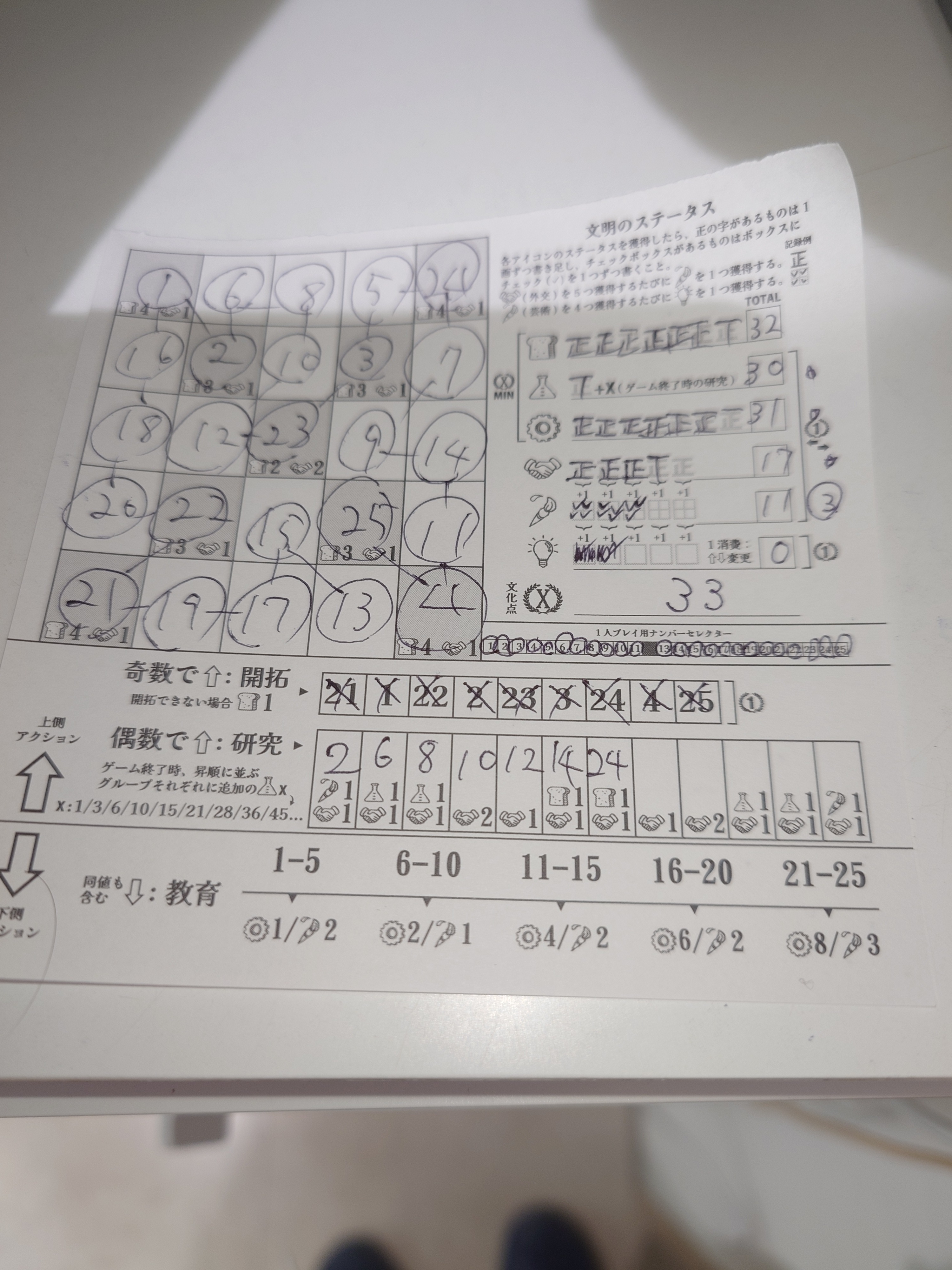 そのプレイ感はとても精緻なパズルを解いている感じで、紙1枚の前で脳が沸騰するのを感じることができます。そして沸騰させてもmor!氏名物のドSな得点設定の前に、ふつうの文明とか忘れられた文明とかで終わってしまうのです。