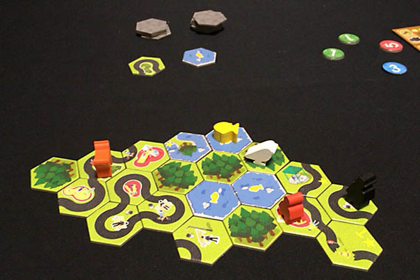 パネルは2枚オープンになっている内の1枚を選び、公園に繋げる。この際、接続した枚数が得点になる。道が途切れるように置くことはできない。