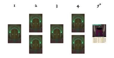 c:もし各階層の最後のエリアなら、5枚目にボスモンスターカードを表面で配置します。 - 入り口は最初(一番左)のカードです。