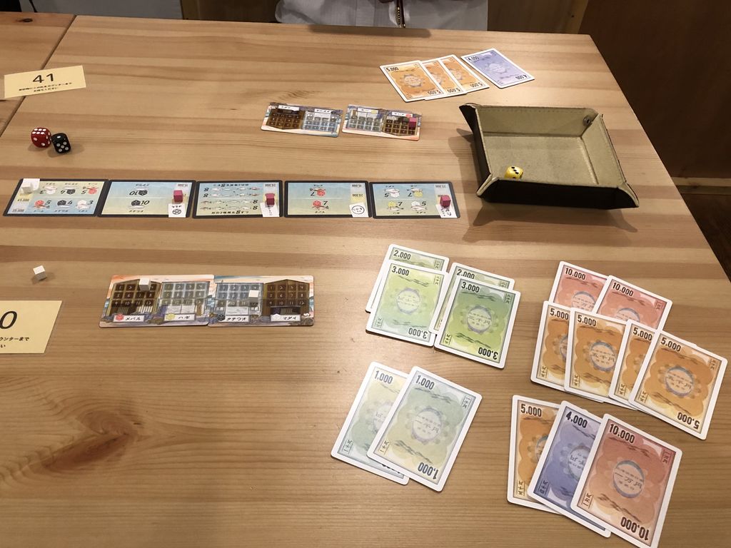 2人でプレイした感想ですが、手持ちのお金カードを見れば、相手の手持ちのお金が分かるので、まさしくガチガチのアブストラクトゲームになります。