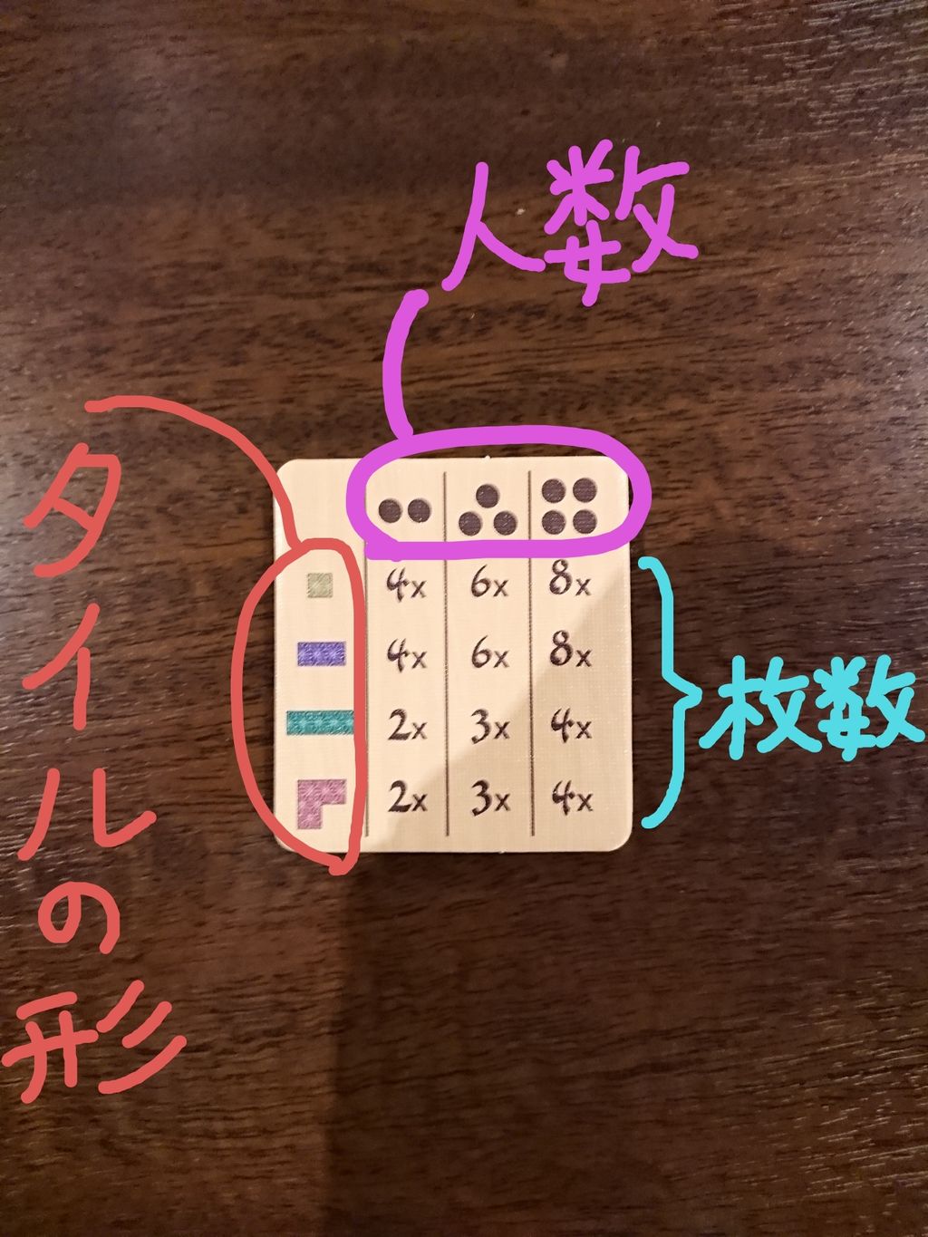 2人プレイの場合は、こんな感じでタイルを共通の場に公開する↓