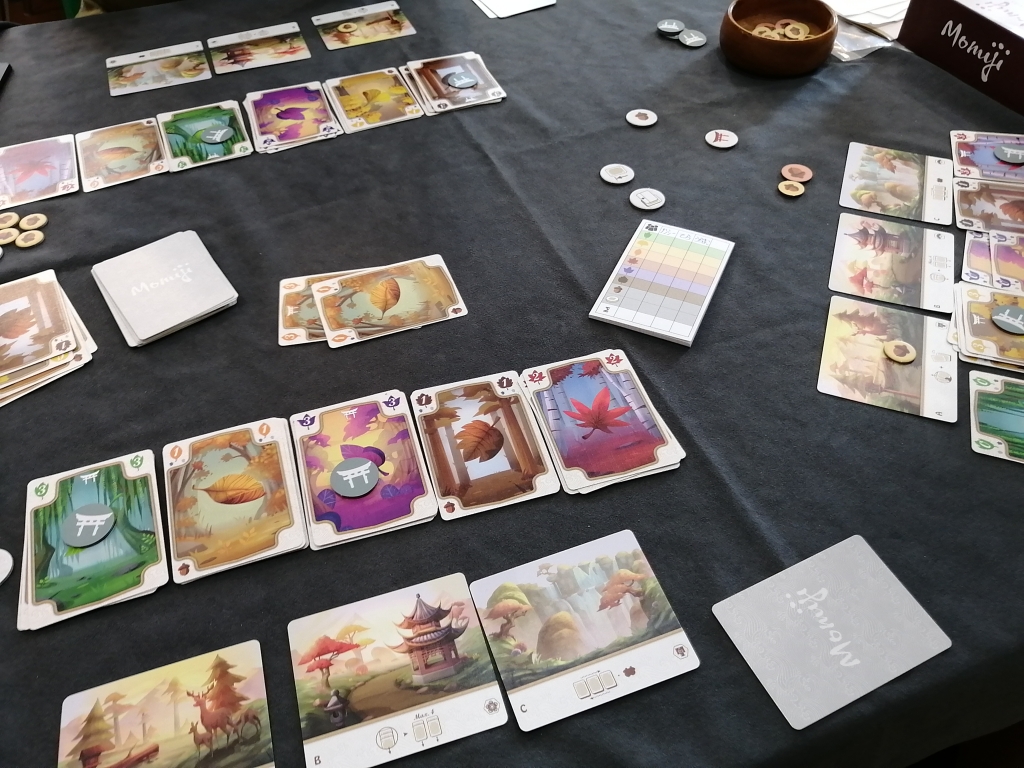 活性化した共通の目標は達成していたら10点、達成できていなければ他に達成していたプレイヤーが3点獲得し、すべての合計得点が高いプレイヤーが紅葉を楽しみ勝ちとなります。