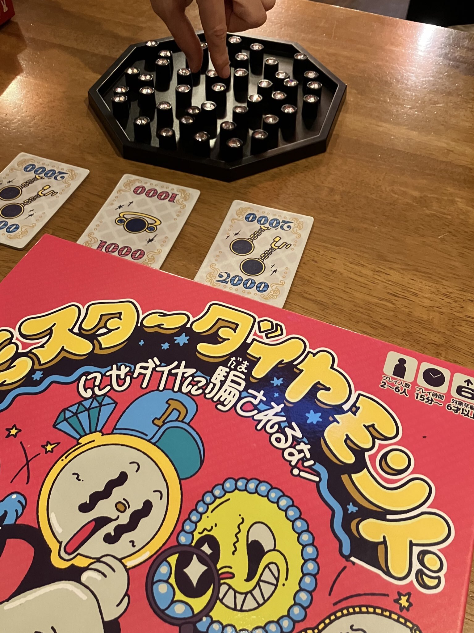 ボードに固定されている偽物ダイヤと、取ることができる本物ダイヤを正しく見極めて、本物ダイヤを集めていくゲーム。