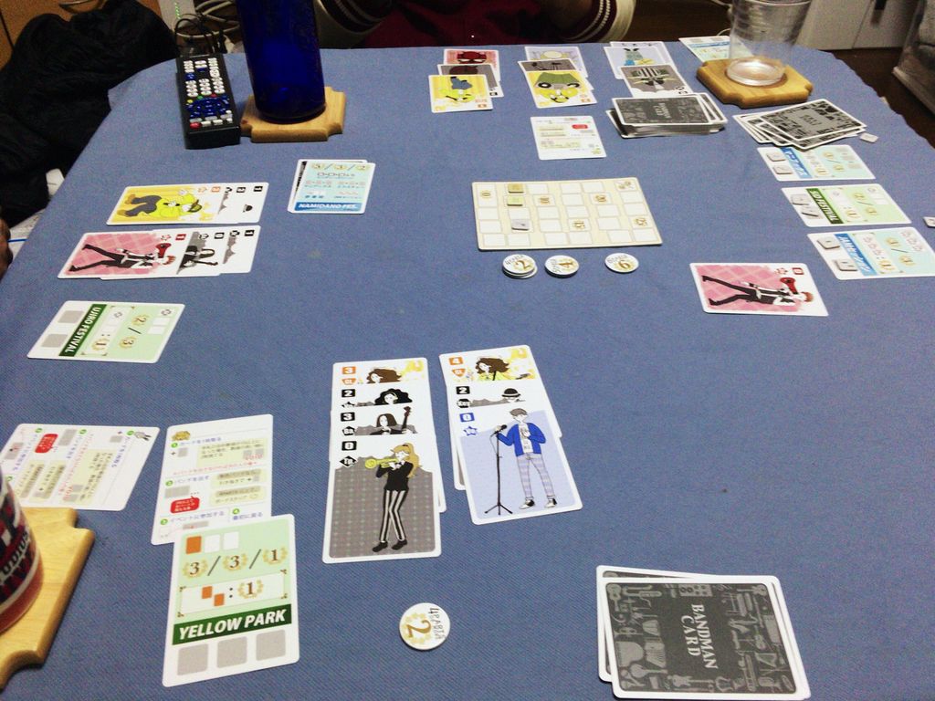 どのカードをスカウトして、どのタイミングでバンドを組ませるか。手札をどのように調整していくか。といったあたりがとてもジリジリヒリヒリとしたゲームです。
