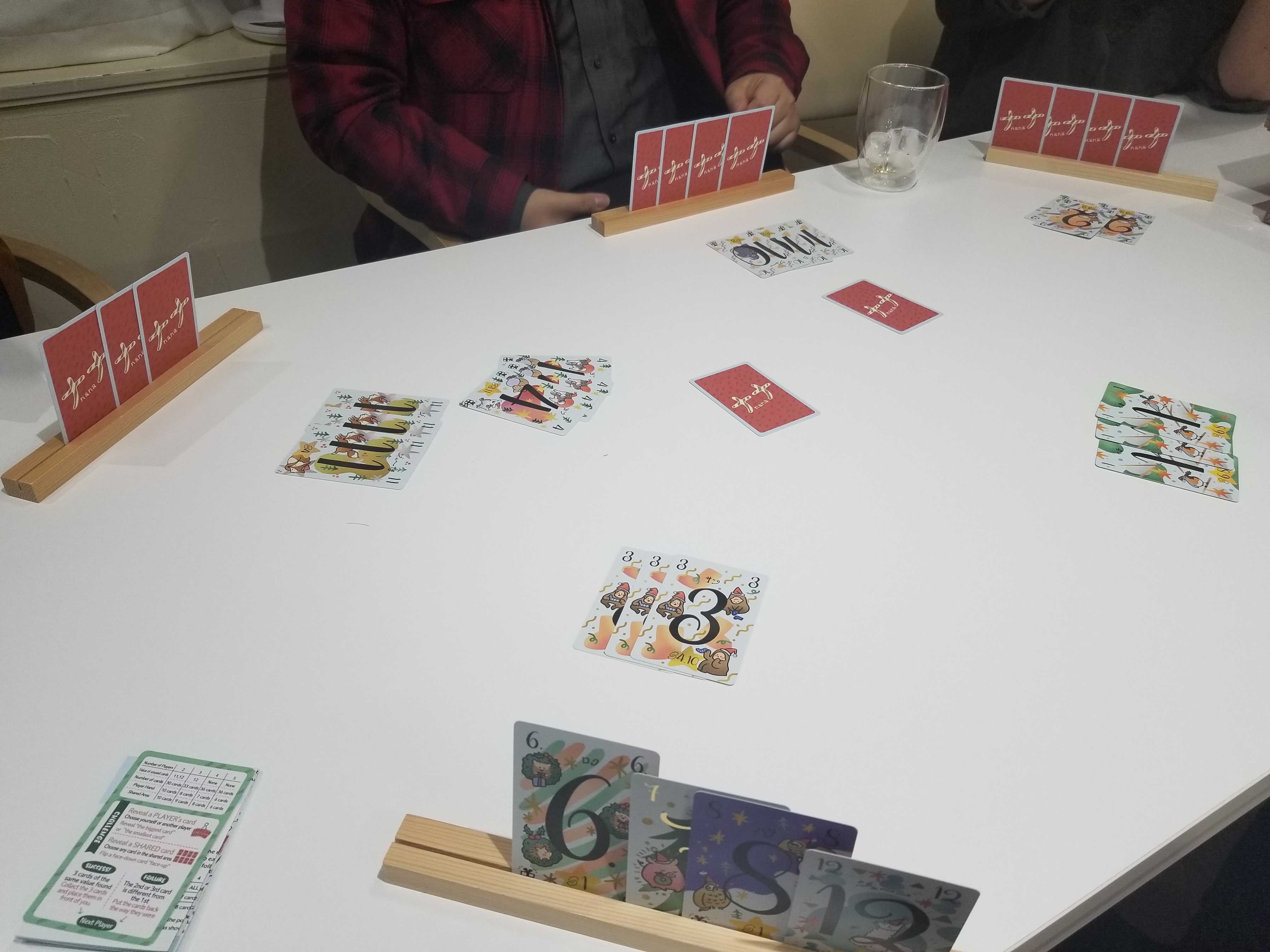12/25クリスマスの日に5人でプレイしました。オリジナルバージョンでも相当面白いのですが、特別ルールのプレゼント交換が入ることによって、右隣から手札(全部)が回ってくると、わかる手札が増えます。5人でプレイしたので、二回プレゼント交換が発生すると、過半数以上の手札がわかるので、エンディングに向けてのスピードが相当、加速して楽しさが増したように思います。是非、特別ルールでプレイしてみることをオススメします!