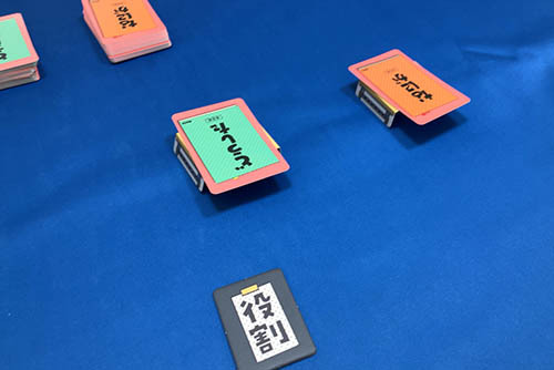 マジメンバーは「なにが」カードと「どうした」カードを両方確認できるが、「遅刻メンバー」は片方しか見ることができない。