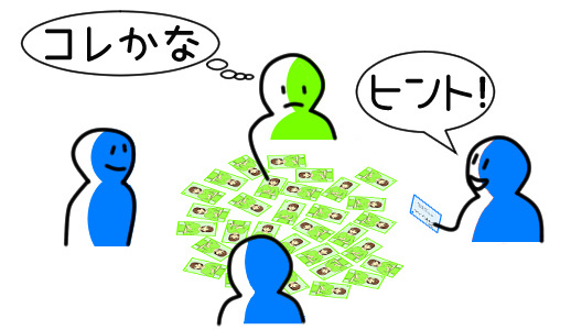 預言者は自分の手札を見て、ヒントを だしやすいものをアタリにえらぶと よいでしょう。