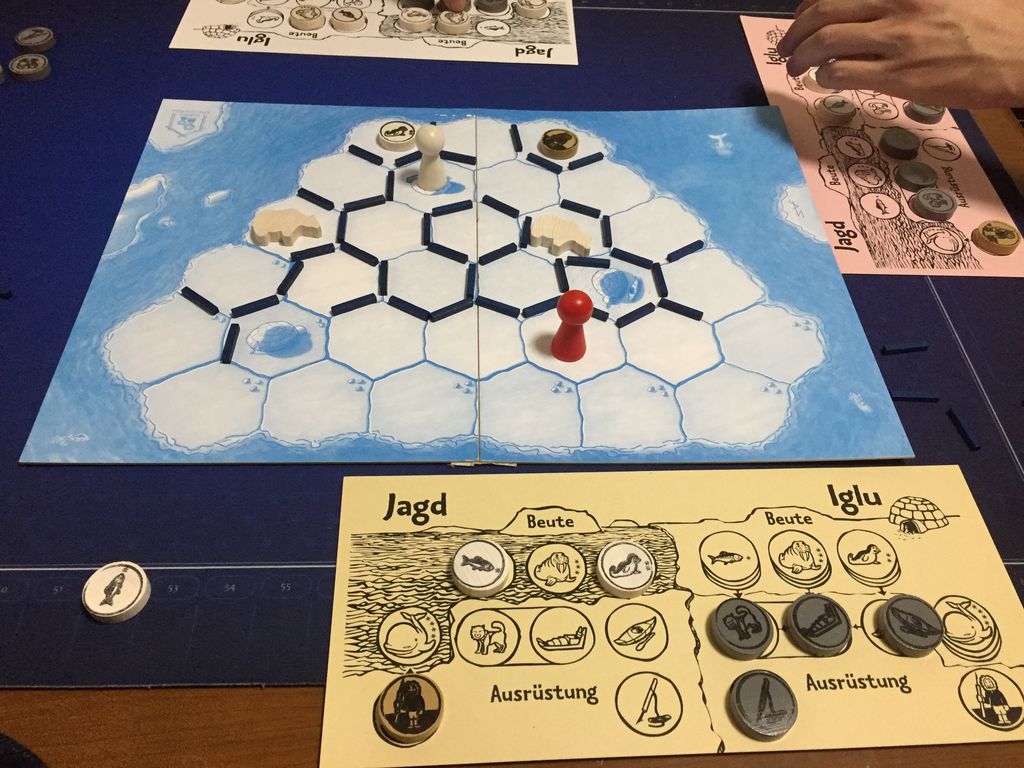 流氷に乗って、セイウチやアザラシ、魚を集めよう! エスキモーと手を合わせればクジラだって夢じゃない! でも気を付けて、流氷にはどんどんヒビが入ってしまうよっ! というアブストラクトゲームです。
