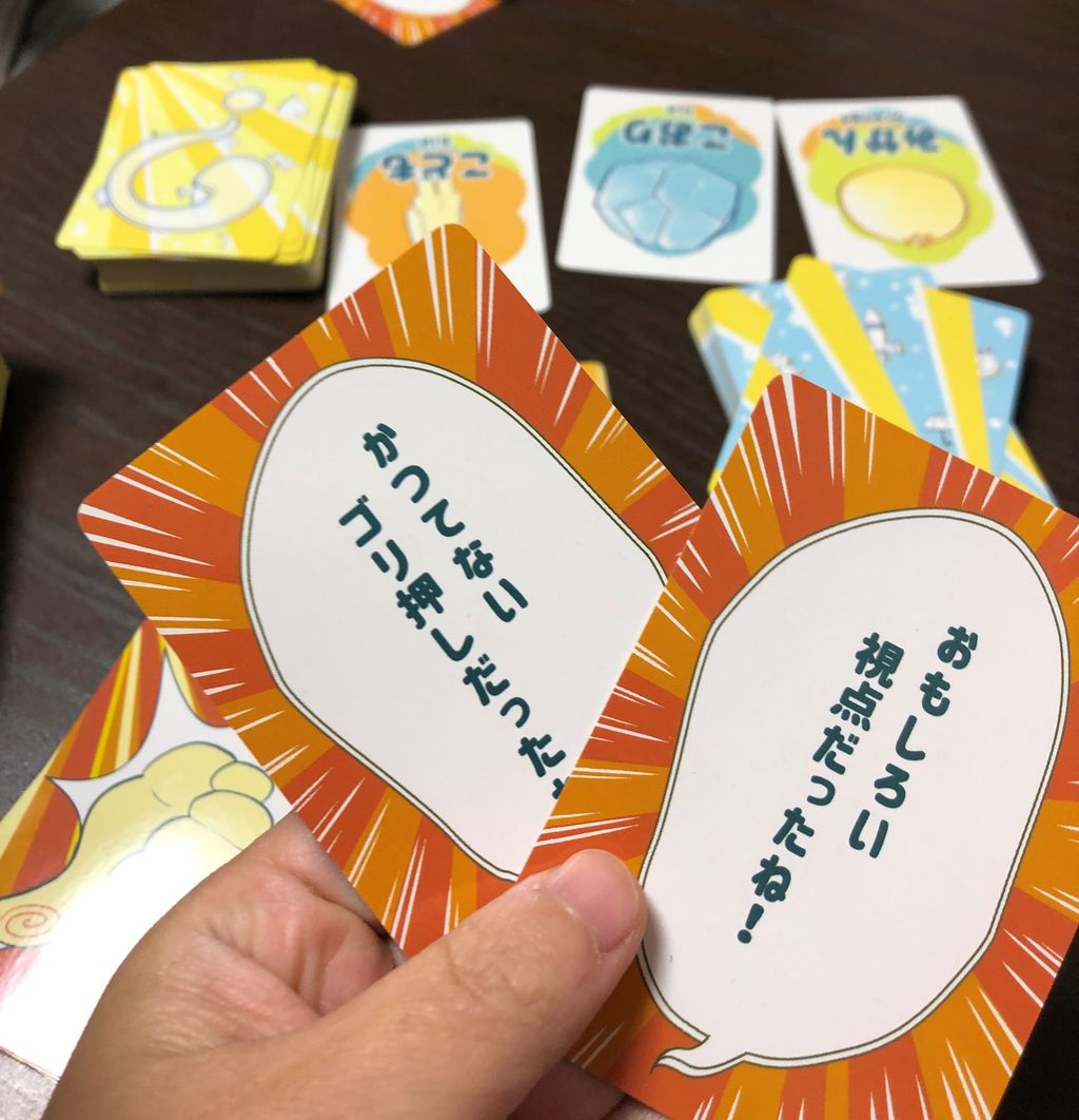 みんなが説明し終わったら、得点となるカードを良かったなーと思う人に渡します!いろんな褒め言葉が欠かれています