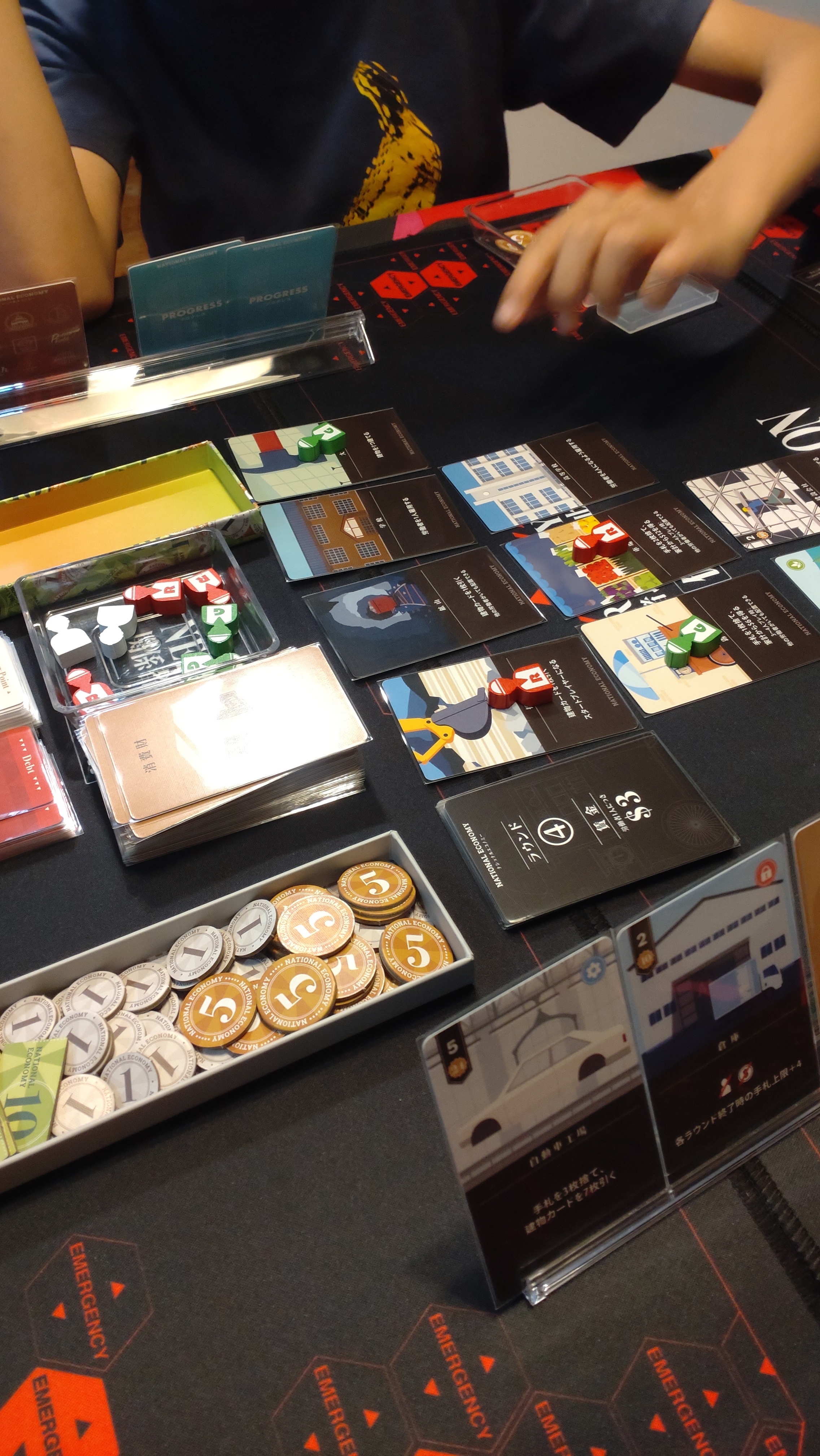 ワーカーを増やすタイミングを逃しまったく歯が立たず負けました。息子は前回、前々回よりも少しずつ得点が伸びています。「楽しい、最高」とご満悦でした。資産の売却のタイミング、手札枚数と残りワーカー数の管理がうまく噛みあうと、激強カードでなくとも良いシナジーが生まれます。発売間もない新装完全版ですが、もはや我が家の定番ゲームになりました。