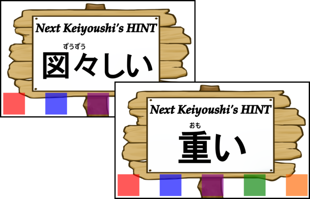 次にプレイヤーの一人が、ヒントとなる形容詞カードを山札の一番上から取ります。